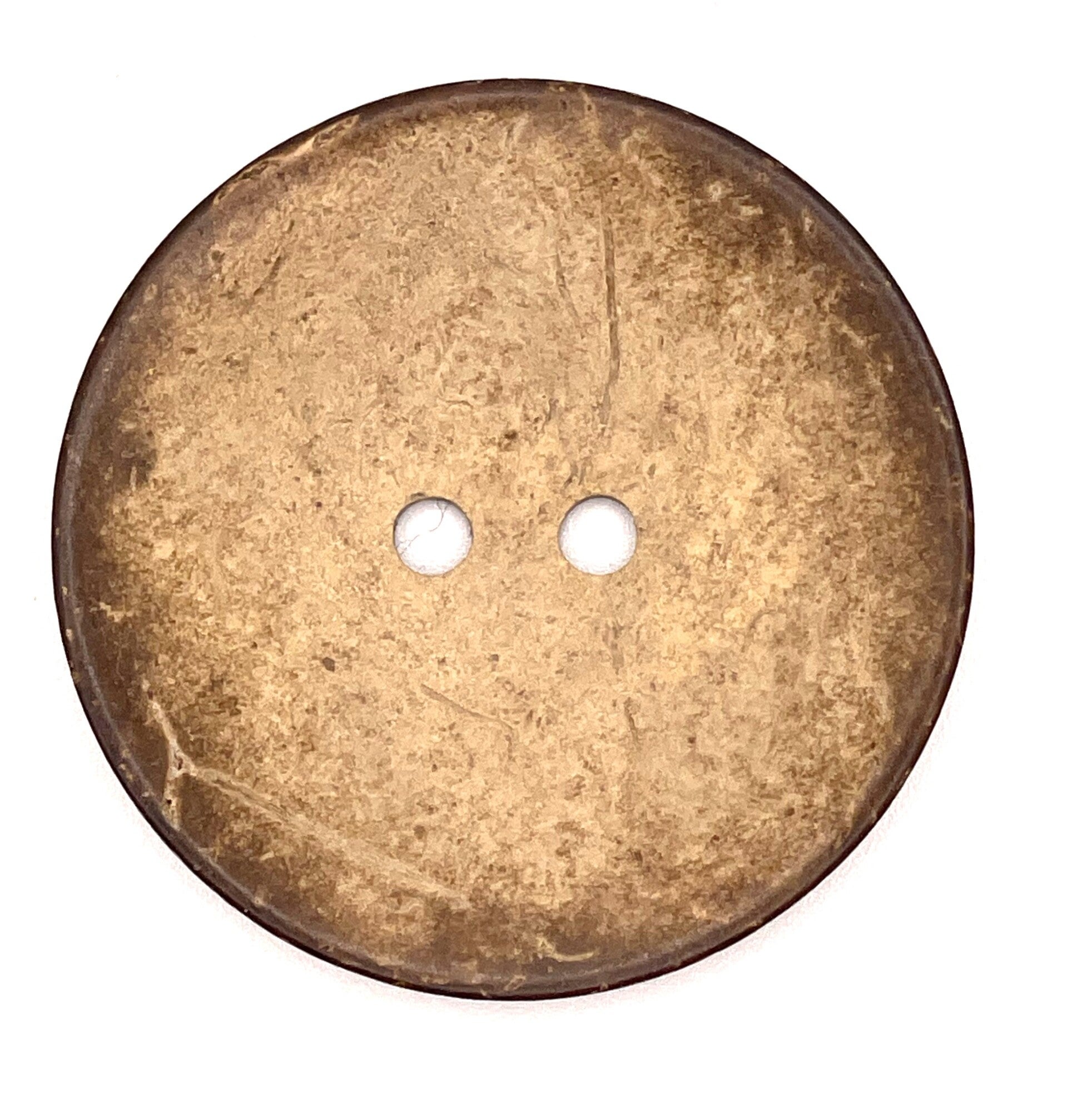 100% natural coconut shell. Classic round shape with two sewing holes. Smoothly polished front with visible coconut grain patterns