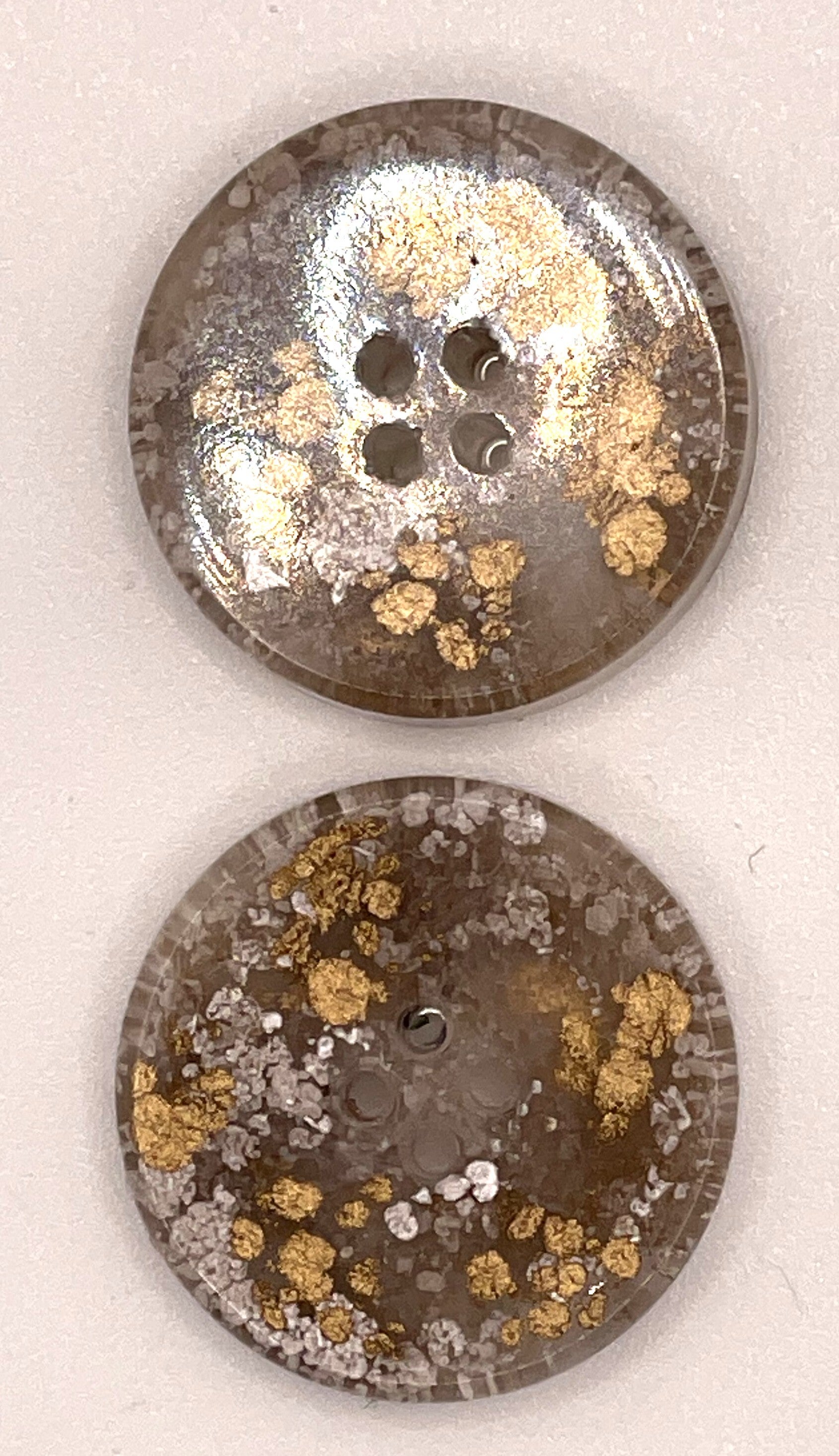 Dye Bloom Buttons are crafted to look like tiny works of art. Each button features a unique metallic bloom effect, where vibrant dyes swirl and expand inside crystal‑clear resin, creating organic patterns that feel alive with color.